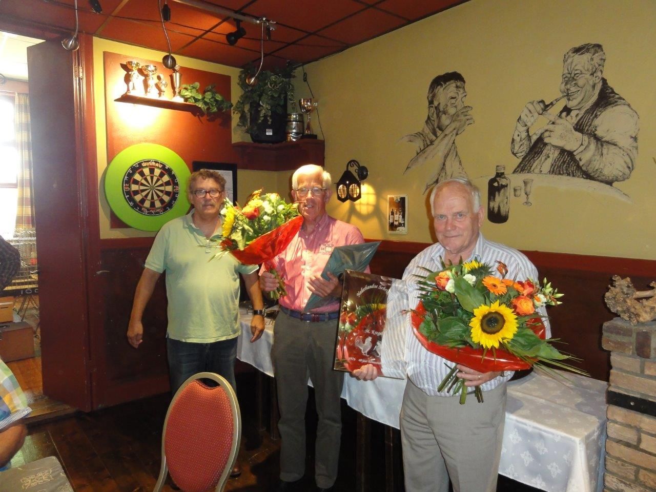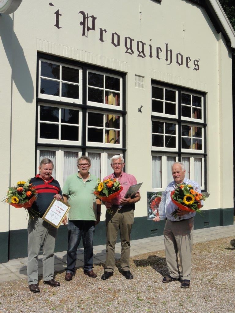 De heren Witten (25 jaar jubilaris) en de heren Nederhoed en Kregel (40 jaar jubilarissen).