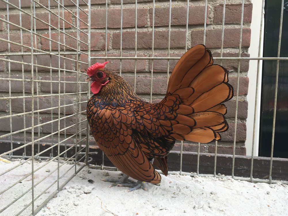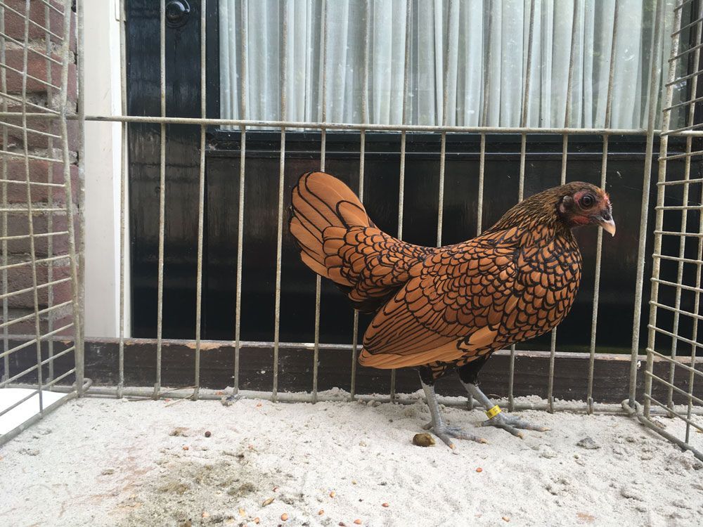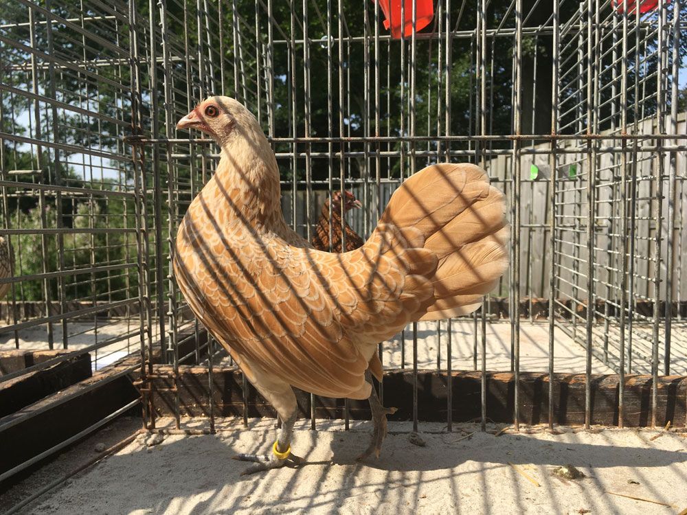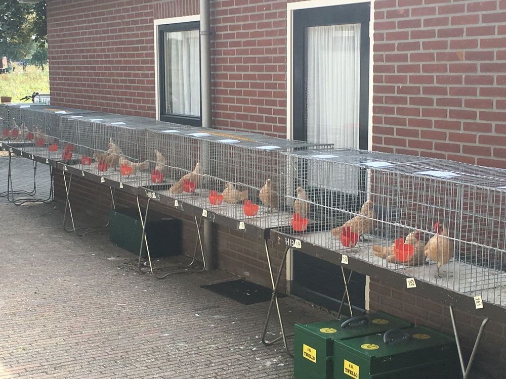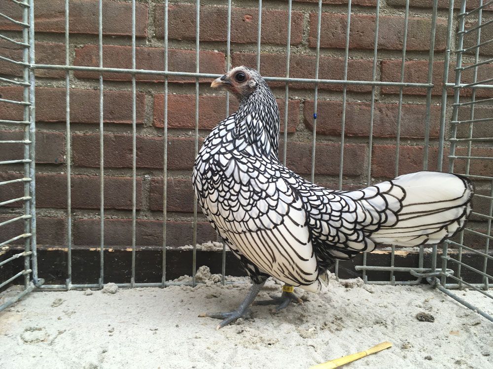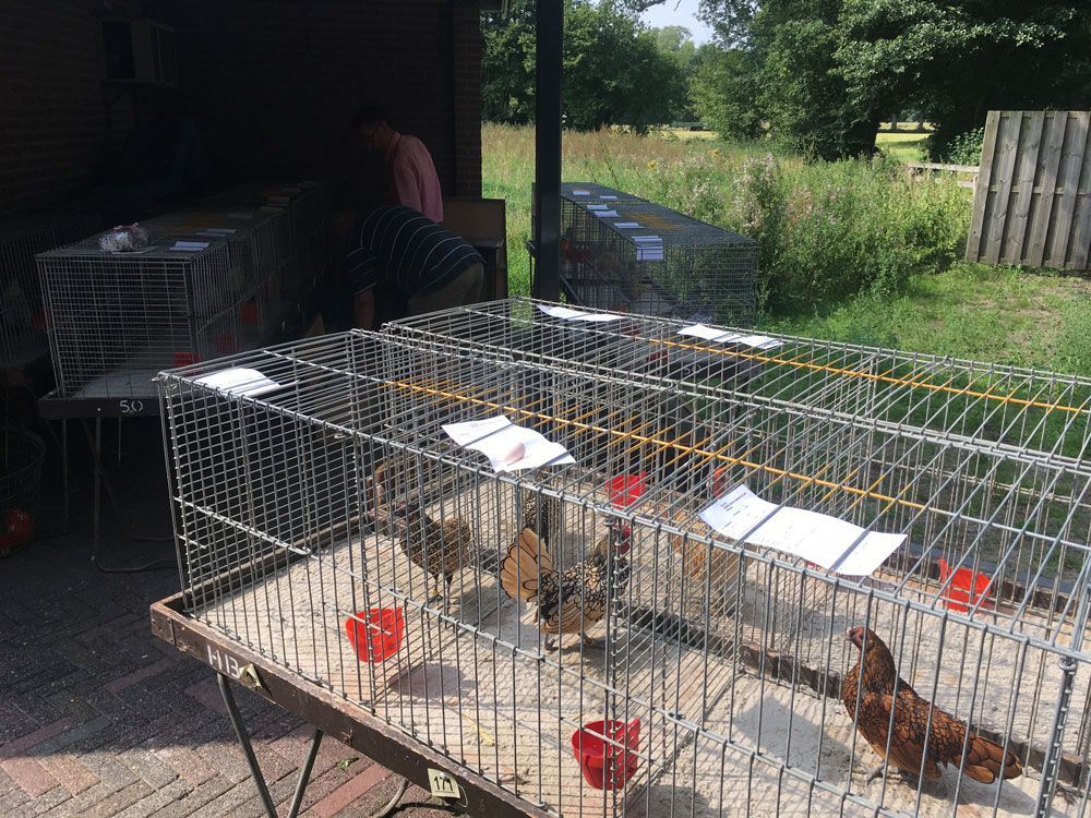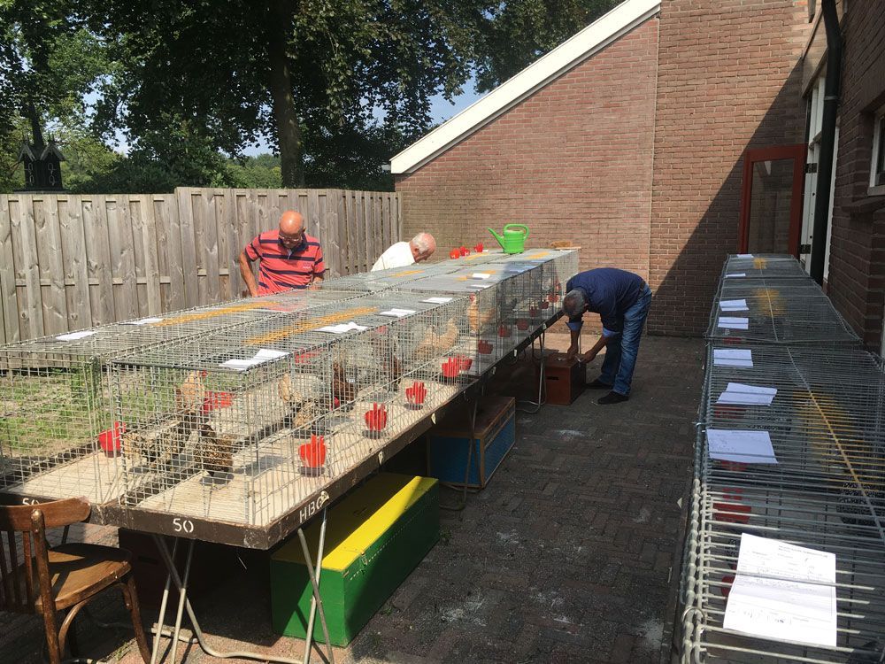 We hadden er prachtig weer bij, zodat de dieren buiten konden worden ingekooid en gekeurd. De jonge dieren werden besproken en gekeurd en voorzien van een predikaat in een 3-talgroepjes. Deze groepjes stonden onder leiding van een ervaren fokker. Er waren in totaal zo rond de 8o dieren van zo rond de 15 fokkers aanwezig. Opvallend was dat het grootse aandeel hiervan van de geel/wit gezoomden kwam. Een aantal prominente fokkers, die er normaal wel bij zijn, moesten zich verontschuldigen. Het was goed om te zien dat maar liefst 5 Belgische leden aanwezig waren. Prijzen winnen zijn op deze dagen niet belangrijk, wel om in een goede sfeer met elkaar te praten over de Sebrights en om van elkaar te leren. Dat is deze dag uitstekend gelukt. Op veler verzoek zal er volgend jaar weer een informele fokkersdag worden georganiseerd. We willen Ronald Vos bedanken voor de organisatie, alsmede een aantal oostelijke leden voor de opbouw van deze dag.